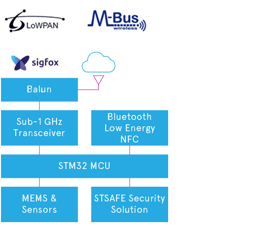 Dietro ogni rete, a prescindere dalla sua natura o il suo scopo, vi è una tecnologia wireless conforme allo standard, ottimizzata per connettività a lungo raggio, requisiti di efficienza energetica e ampiezza di banda. Con la crescente importanza delle reti di sensori wireless e dell’IoT, la maggior parte dei sistemi elettronici richiedono la connettività wireless. Il portafoglio ST include una serie di ricetrasmettitori RF, microcontrollori wireless, IC processori di rete e moduli completamente certificati per tecnologie di connettività wireless chiave, tra cui Sub-1GHz, LoRaWAN, Sigfox, Wireless M-Bus (wM-Bus), LTE Cat 1 e Narrowband IoT (NB-IoT), WiSUN e 6LowPAN.